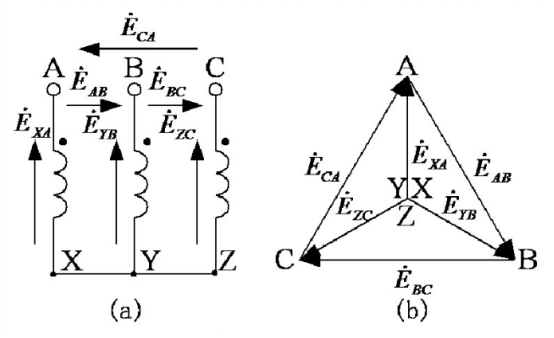 A、B、C代表高壓繞組的首端,X、Y、Z代表高壓繞組的末端