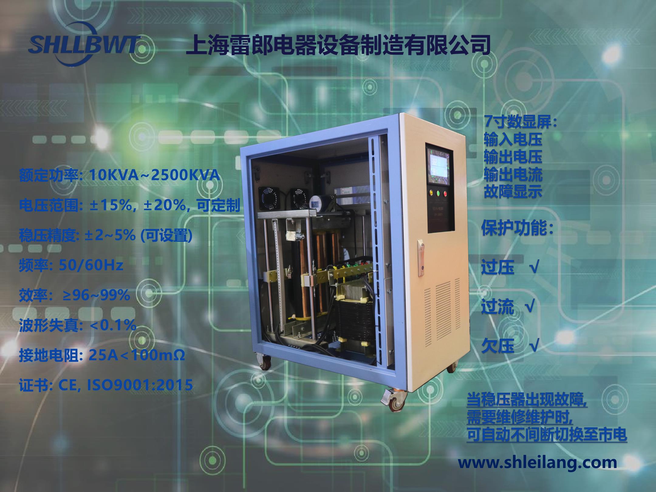 上海雷郎電器設備制造有限公司是專(zhuān)業(yè)生產(chǎn)穩壓器的源頭工廠(chǎng), 生產(chǎn)設備先進(jìn),技術(shù)優(yōu)良,產(chǎn)品不僅在國內暢銷(xiāo),更是出口東南亞,中東,非洲,南美洲等多個(gè)地區。上海雷郎電器生產(chǎn)的穩壓器都是使用優(yōu)質(zhì)的原材料,損耗低效率高,穩壓效果非常好。如果您度穩壓器感興趣,需要購買(mǎi)穩壓器,可以聯(lián)系上海雷郎電器。